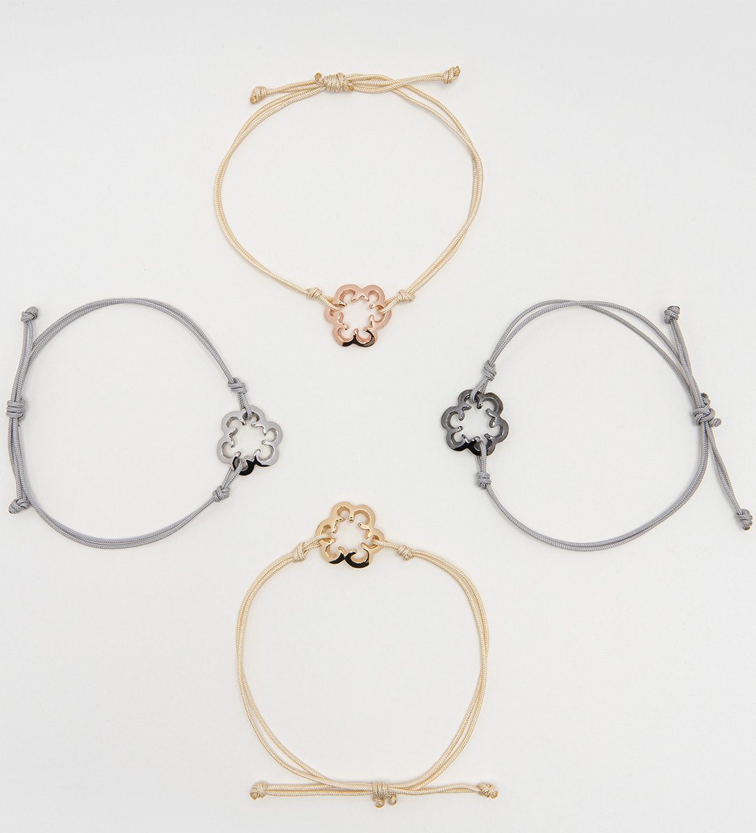 String flower bracelette in 4 different colours.
